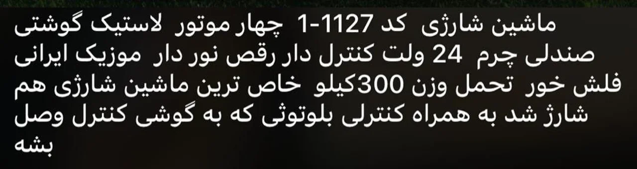 ماشين شاررى كد 1127-1 چهار موتور لاستيك گوشتی صندلى چرم 24