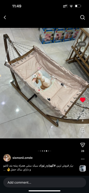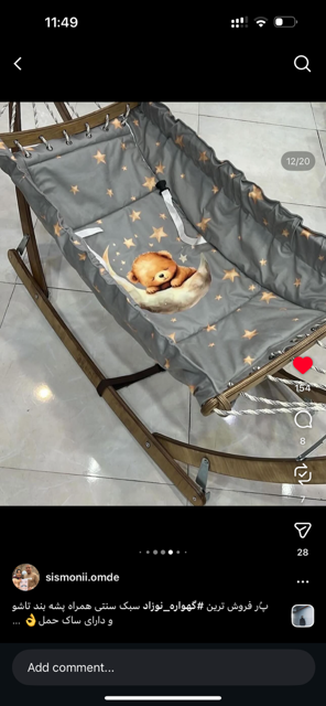 گهواره سنتی با طراحی کلاسیک و مواد با کیفیت، راحتی و امنیت کودک شما را تضمین میکند. مناسب برای خواب آرام نوزادان، این محصول دارای ساختار مقاوم و رنگآمیزی طبیعی است که جلوهای زیبا به فضای اتاق کودک میبخشد. استفاده آسان و حمل راحت از دیگر ویژگیهاست.