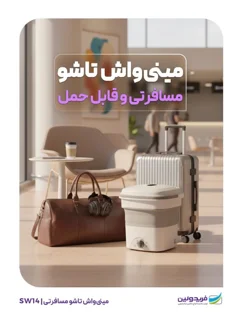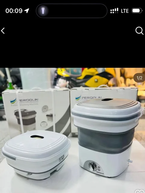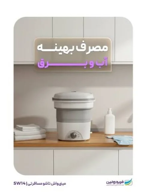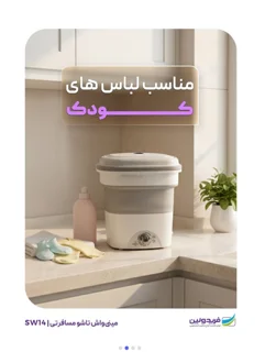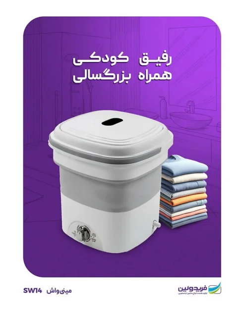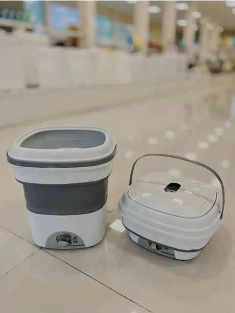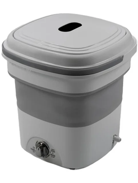 ماشین لباسشویی تاشو مناسب مسافرت و خوابگاه با ظرفیت 1.5 کیلوگرم، دارای برنامه شستشوی عادی و زمان شستشو 1 تا 12 دقیقه با دستگاهی کوچک و پرقدرت برای لباس نوزاد و لباس های زیر.