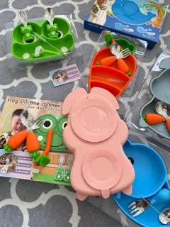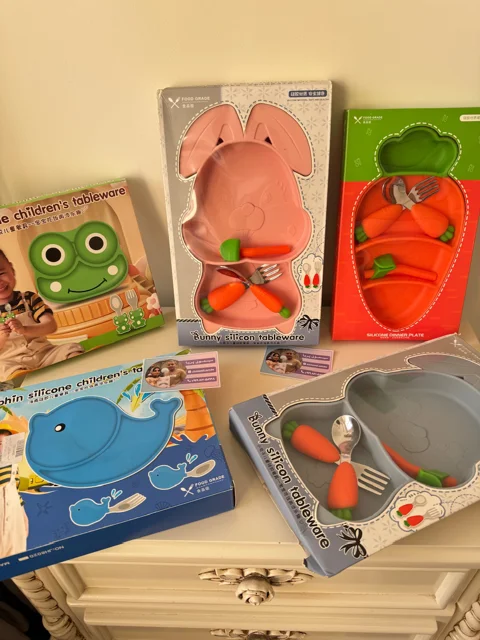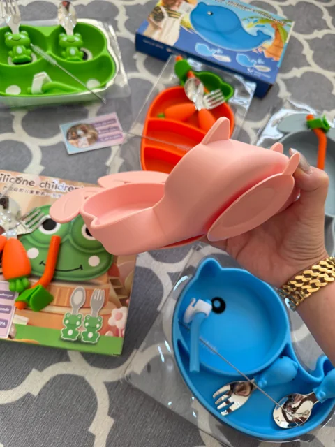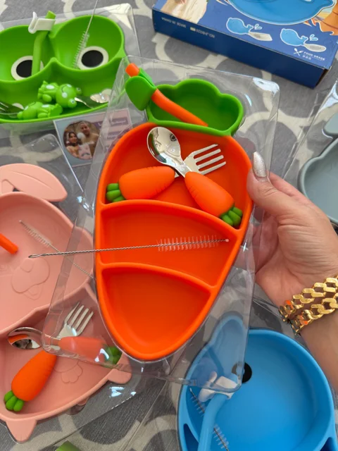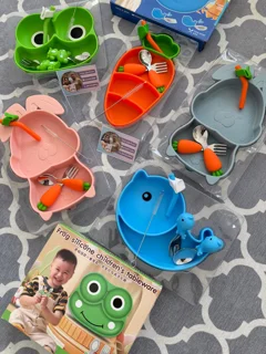 مجموعه ای از پرفروش ظرف غذای سیلیکونی کودک با جعبه، فاقد مواد مضر، قابل استفاده در ماکروویو و ماشین ظرفشویی، همراه با تحویل حضوری در تهران و پرداخت درب منزل.